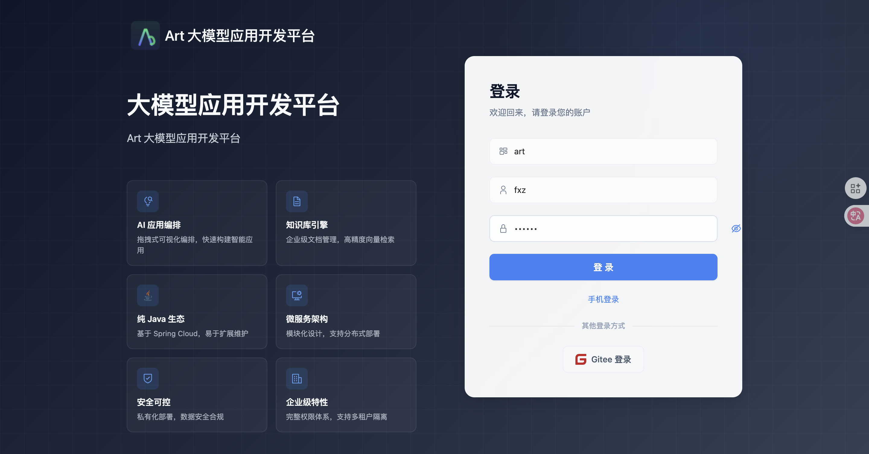 - 依次启动art-gateway、art-auth、art-server-system即可。注意,这三个服务是必须启动的且网关服务必须优先于system启动,其他服务按需启动。